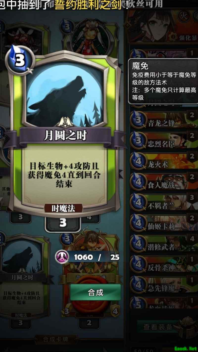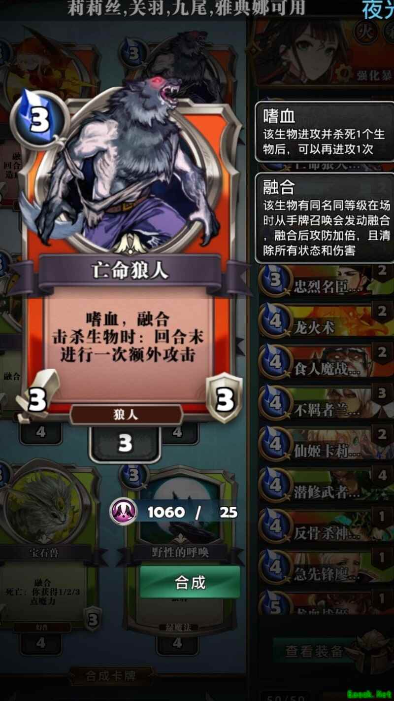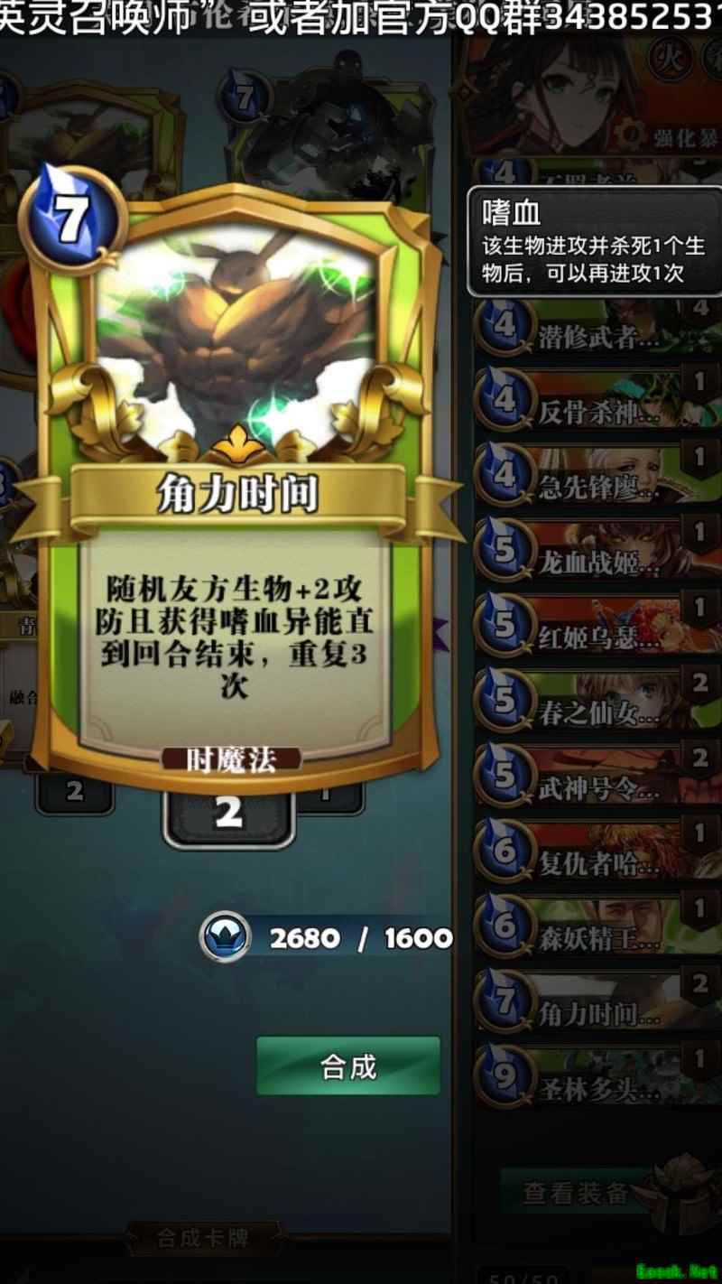 这套卡组虽组件繁杂且造价偏高,但核心卡片获取难度不高。主要通过法术增强带有嗜血效果的单位,实现单列突破。例如在四费时使用月圆之时即可强力压制对手。