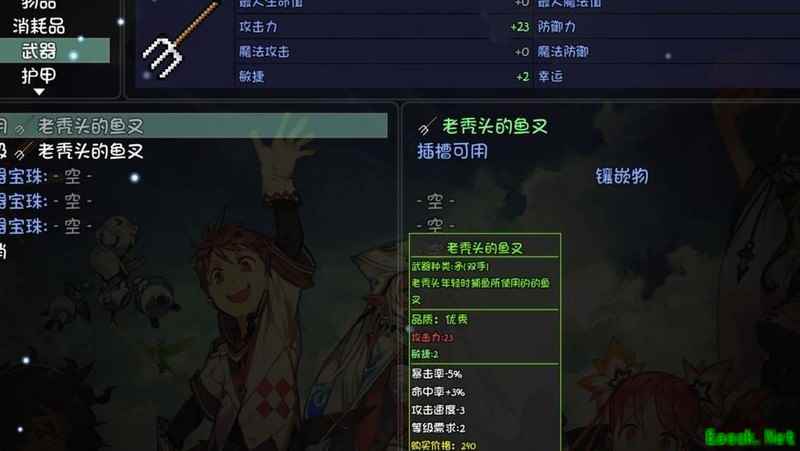 老渔夫年轻时用的鱼叉,如今传给了新手村的后辈。