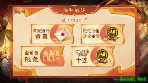 今年的春节主题活动已于1月29日正式开启版本福利,在此期间福利放送不间断,【记忆珍宝·旧赛季】选定重置、首充返利重置、全角色限免以及登录送【记忆珍宝·旧赛季×10】均已上线,请访客们务必及时上线领取!