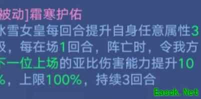 冰雪女皇整体表现尚可,擅长通过再临分支进行站场清理属性与增益状态,释放大招后可削弱敌方全属性,同时为后续出场亚比提供数回合的抗性与伤害加成,若资源充足,值得培养。