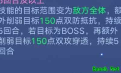 大招需在场持续6回合方可转为全体削属,例如首回合出场,第七回合生效。