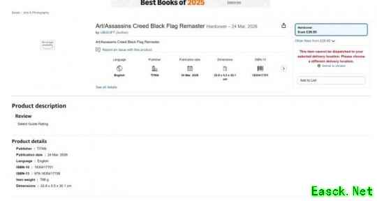 在亚马逊页面上发现了这本艺术画集的商品页面不仅列出了产品本身,还列出了其出版商Titan Books。该出版社与育碧有着长期的合作历史,自2012年以来一直为《刺客信条》系列出版艺术画集、指南和百科全书。