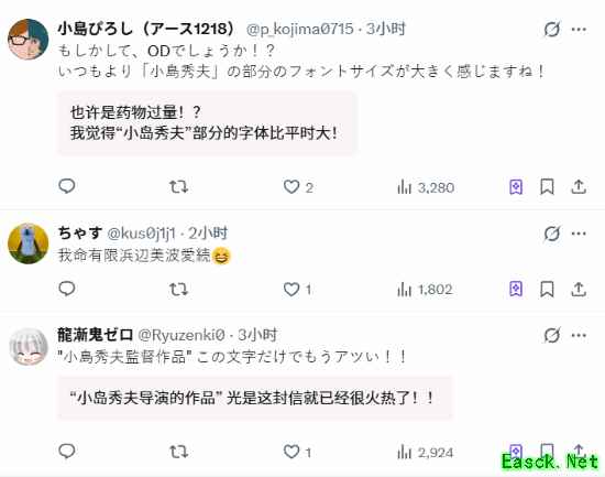 “难道是OD吗!? 感觉“小岛秀夫”部分的字体大小比平时要大一些呢!”