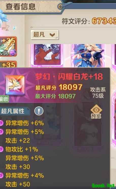 在第一页和第二页各配置两名冰雪公主(法系)与两名闪耀白龙(物理系),超凡页放入一名冰雪公主和一名闪耀白龙,满足该组合后,异常伤害将稳定达到80%以上。