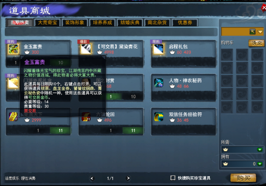 如果觉得自己今天手气不错,可以直接去商城开10个金玉富贵(金价低于1000就不亏),也可以去挖挖高级五行盘(有几率出稀有材料和雷钻)。这个属于“搏一搏”玩法,适合对运气自信的萌新。