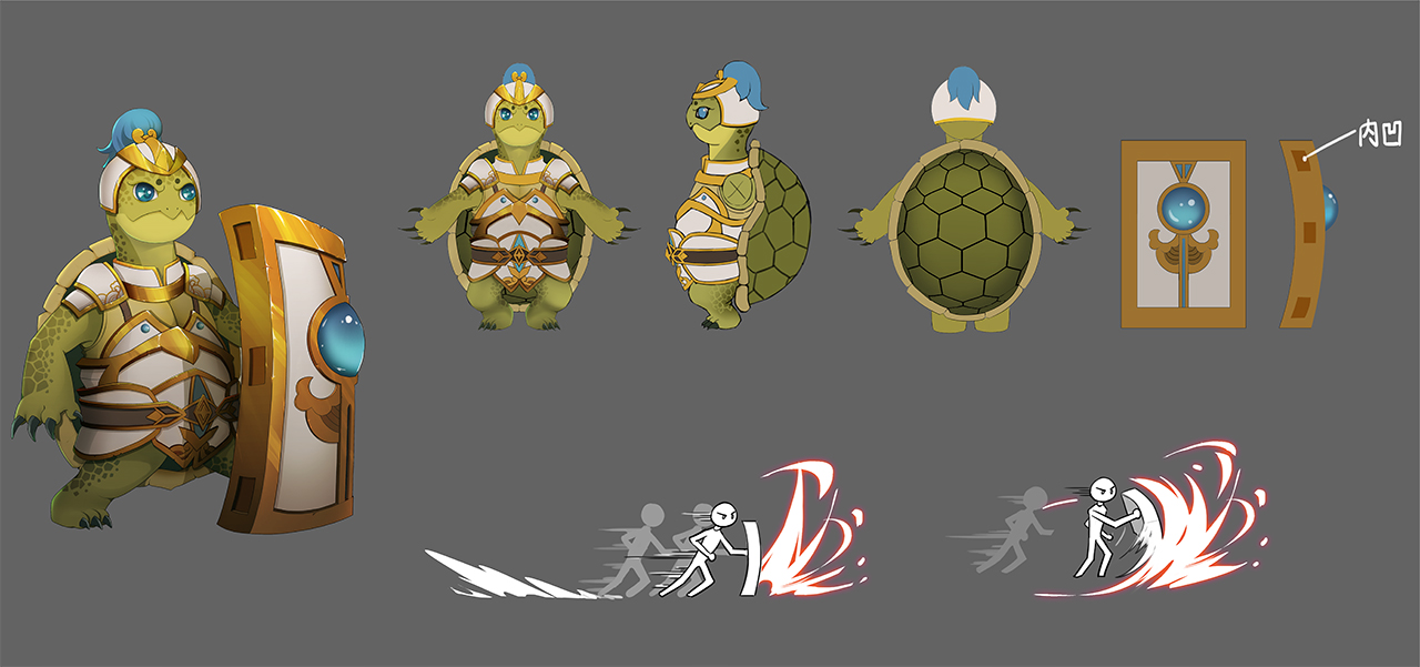 玳瑁,东海的海龟守卫,甲如厚瓦,利刺难入。拥有坚硬的铠甲和巨盾,性格愚钝,畏畏缩缩,十分胆小怕事。不过,玳瑁最大的愿望就是希望自己有一天能够变强,这样他就有能力保护东海妖。