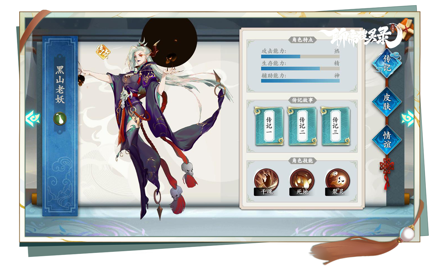 妖非善类,人亦险恶!黑山老妖一直以凶狠狡诈的形象呈现,而《聊斋搜灵录》塑造了她多情的一面,黑山老妖还未化形的时候,曾有一只云雀常伴其左右,是她修行路上难得的知己,化灵时,云雀寿元耗尽,黑山老妖为寻回云雀逆转阴阳。