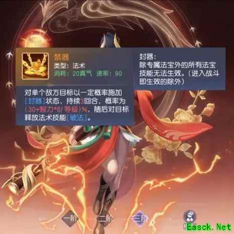 可使敌方除专属法宝外的所有法宝技能失效,堪称逆天神技。例如,使云中仙令对方的蚩尤铠、炎帝盾失效,我方杨戬、睚眦便能打出更高伤害;若让求悟鞭、降魔杵、落魂钟失效,则可为我方神将创造更安全的生存环境。