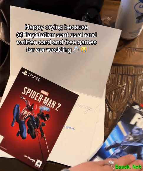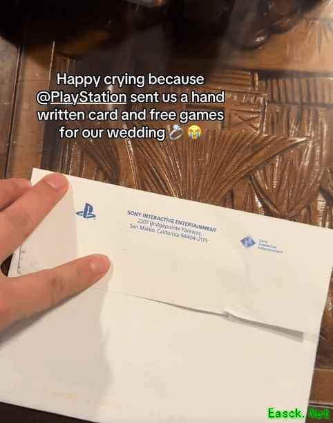 一对新人因为一件意外的小插曲在社交平台上走红——他们向索尼寄出婚礼请柬后,竟然收到了来自 PlayStation 的“新婚大礼包”。这段开箱视频在网络上分享,短时间内便吸引了大量围观。