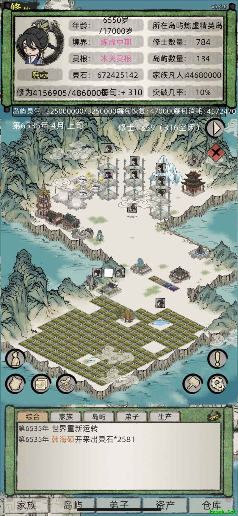 在这种模式中,玩家需将寿命即将耗尽的元婴大圆满修士调至岛上进行突破,具体突破标准因人而异。我的方法是:观察其积累的修为,若超过一千万便允许晋升,后期可适当提高要求,毕竟可通过丹药辅助。运气好时一千万修为或可直接突破至炼虚期,但通常需要两千万以上修为才较为稳妥。