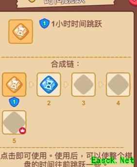 点击可获取时间跳跃碎片,集齐并合成至四级可获得。继续合成大型碎片即可制成道具。使用后虽无法真正穿越时空,但能跳过相应时间段,直接领取该时段内累计产出的所有物品。