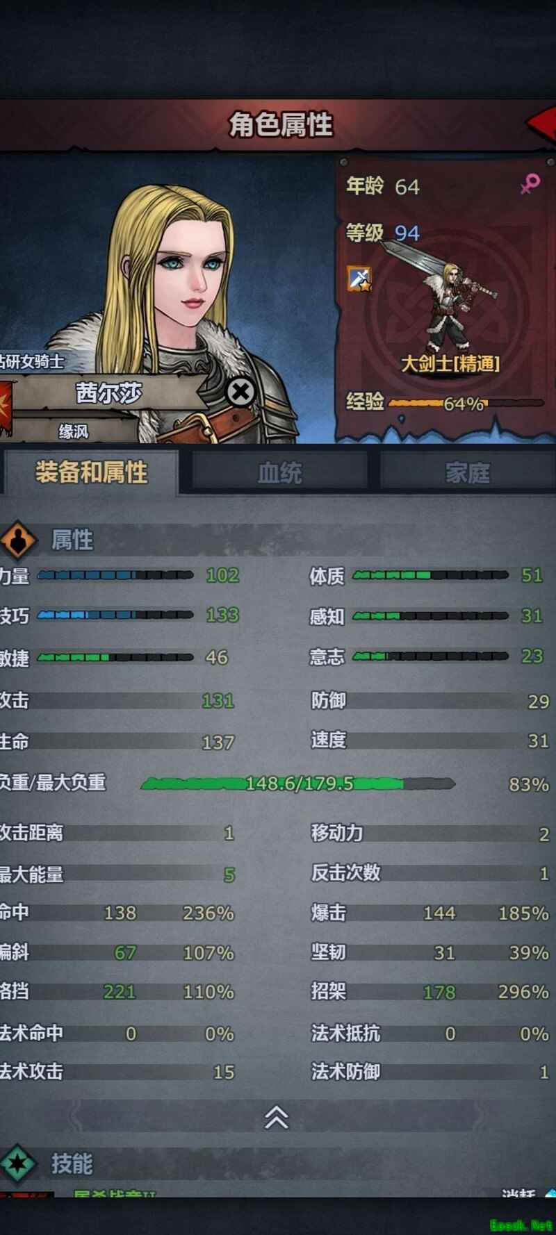 别关注技能,关键在装备。大剑和强韧需达到5级,否则难以承受八盾长弓的普通攻击,其余属性匹配即可。