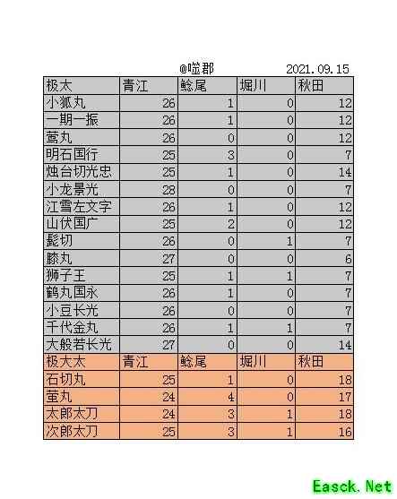 青江整体需求较高,二姐制作时保留几把即可。若需极化大太、太刀、枪或薙刀,记得预留部分秋田。