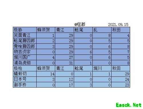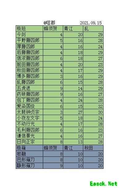 鲶尾可用骨头或堀川替代,秋田和乱亦可替换为合成数值相同的短刀。