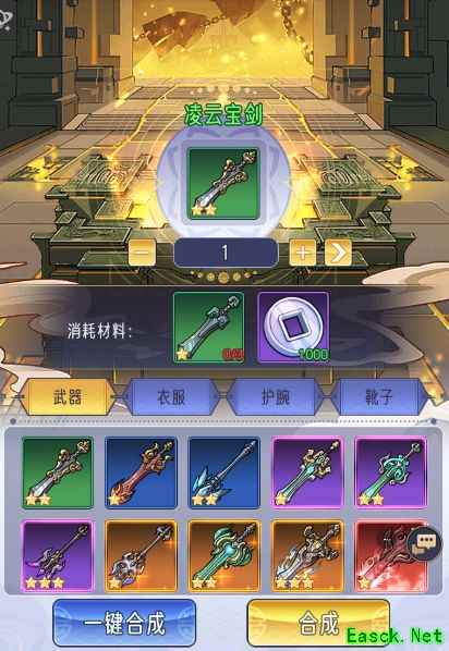 器室是装备炼制的场所,玩家可根据配方炼制各种武器。