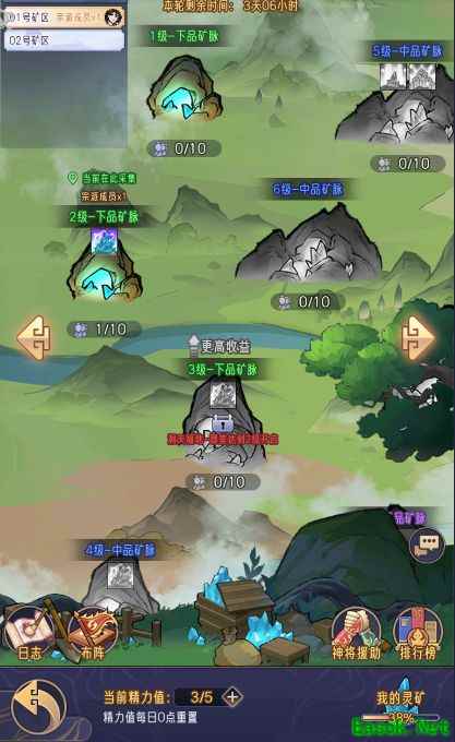 矿场采用占领机制,每位玩家每日可参与五次。玩家可向好友请求神将协助,也可派遣自己的神将支援他人。成功占领矿脉一段时间后,即可采集矿石,这是打造装备的重要材料来源之一。