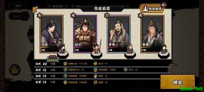 我随意搭配了名臣,王昭君和班超在这个剧本中能额外提升好感度。