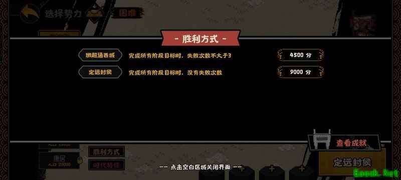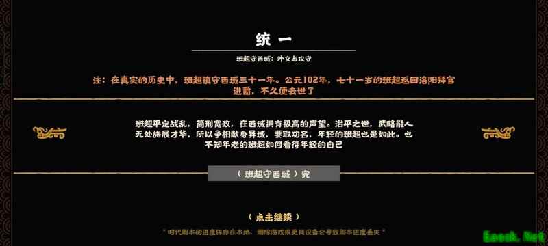 胜利的结局有两种,班超通西域的过程较为简单直接,可快速进入下一阶段,期间允许失败几次。