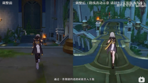 随后还有主线流程的优化。除了直播之前提到过的文本量减少外,前瞻直播还以直观的跑图对比,展现了他们是如何重新编排与简化3.0任务的路线与时间的。