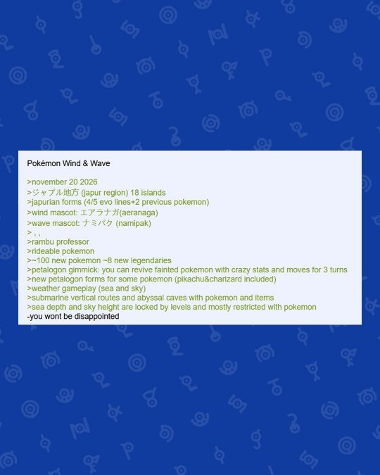 有关第十世代《宝可梦》系列新作《宝可梦:风/浪》的全新细节近日在网络泄露。