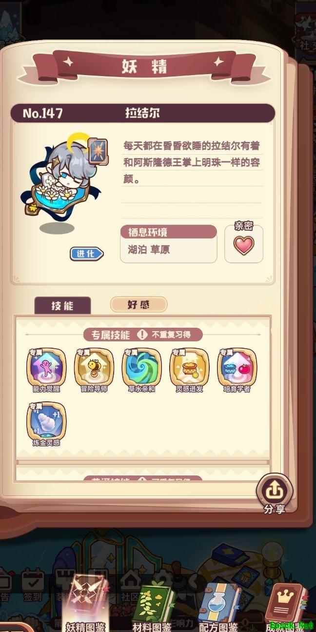 由于角色间的属性差距并不明显,在后期培养中,我们更关注妖精所拥有的技能优势。以拉结尔和沙音为例,她们具备炼金灵感这一特殊技能,有50%的概率使炼金收益提升50%,而阿波罗和姜尚则不具备该技能,这也让拥有该技能的角色在资源获取上更具优势。目前我尚未获得沙音与阿波罗,相关技能信息参考自游戏论坛高玩分享及bwik数据整理。从实际效果来看,炼金灵感带来的增益可粗略计算为50%概率乘以50%加成,相当于整体收益平均提升25%。这意味着在长期炼金过程中,拥有该技能的妖精能显著提高资源积累效率,成为后期培养中的关键优势所在。