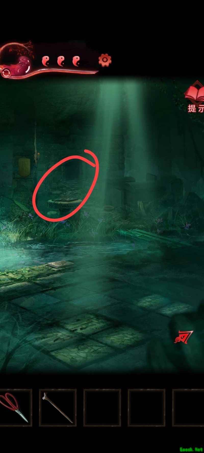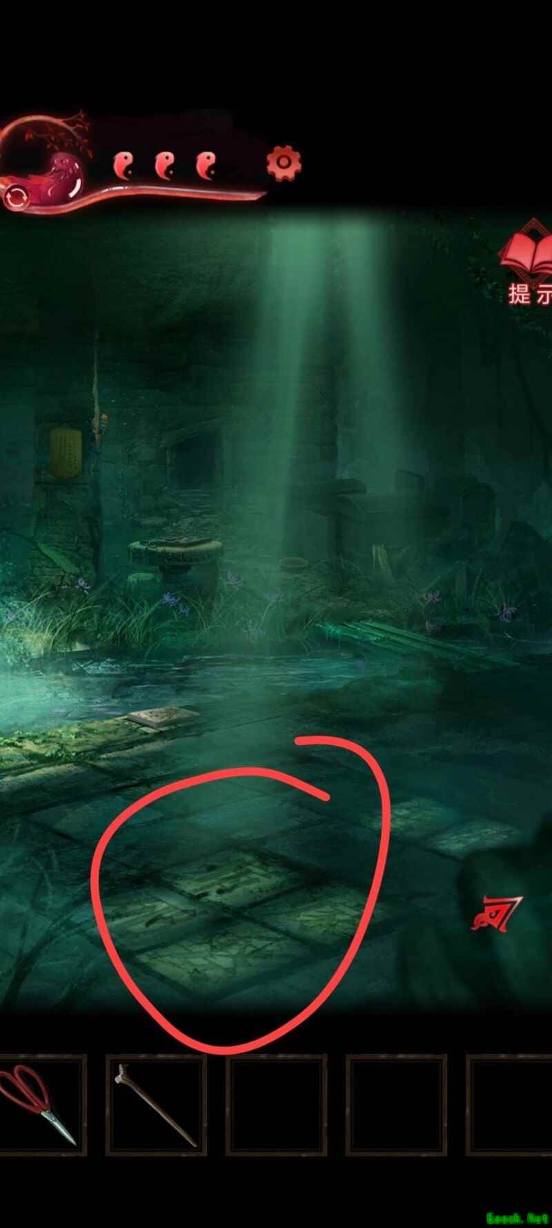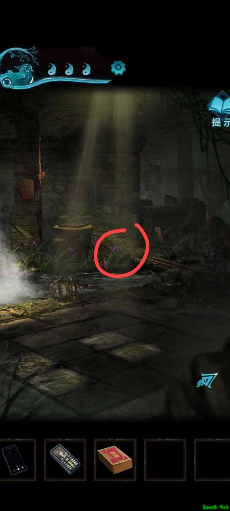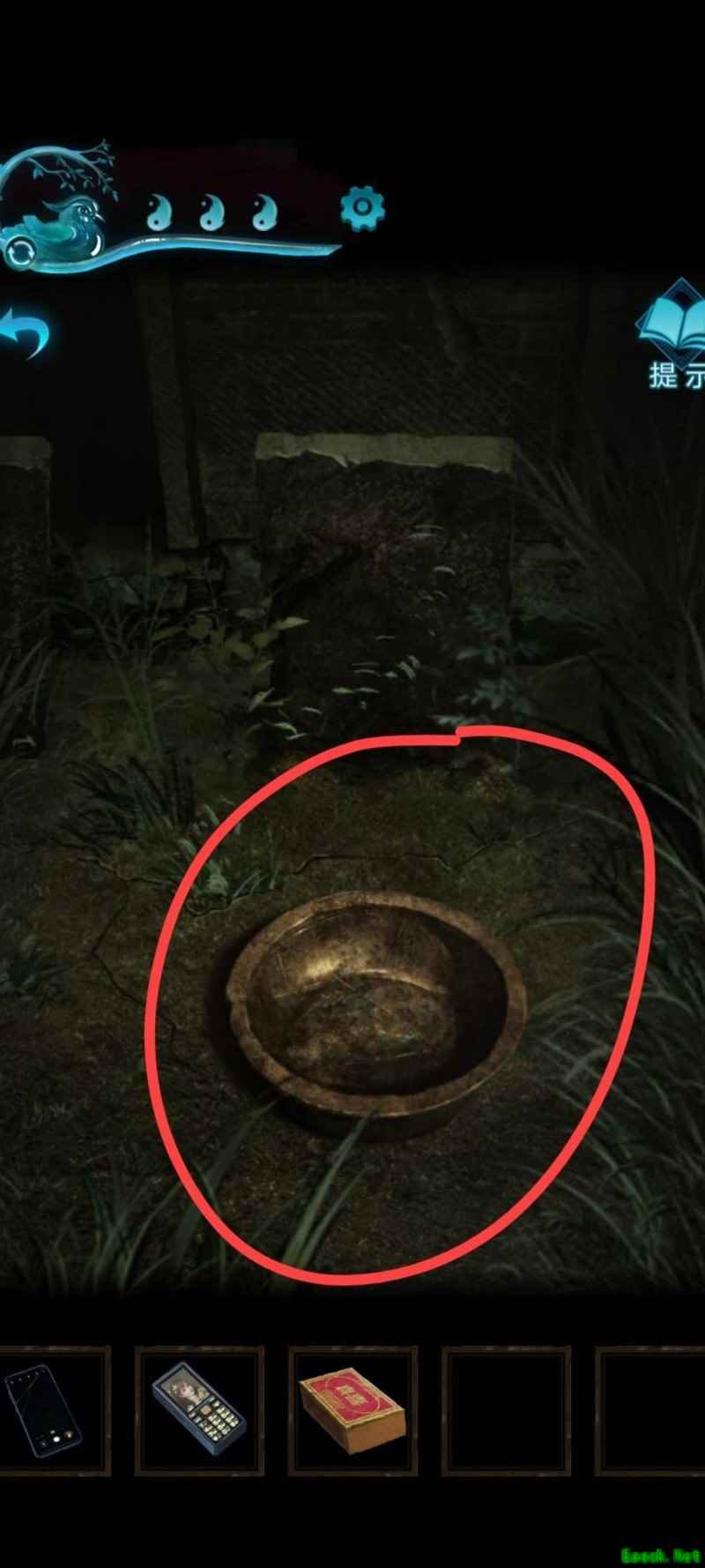 取走石龟,将司南置于其上,便会自动移至一处土堆,使用该道具挖掘,即可获得新的物品。