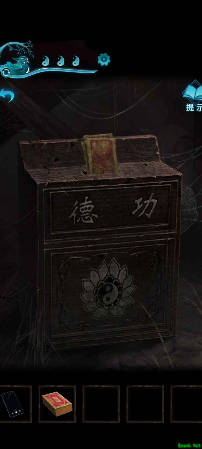 男生回到树旁的小屋,即六藏菩萨处,将隧道中取得的礼金投入功德箱,随即获得一件新道具。