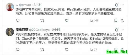 由于没有了竞争对手,索尼就没有必要为了竞争而降价,也没有必要亏本卖主机来抢用户,因为玩家没有其他主机可选。”