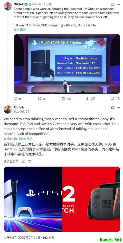 推主NikTek发推说:“在菲尔·斯宾塞离开后,有些人庆祝Xbox这个主机品牌的“衰落”。然而这些人真的需要重新思考一下,如果索尼没有竞争对手,游戏行业的未来将会如何。