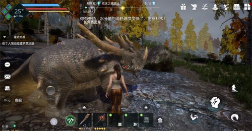 《黑暗与光明手游》中除了丰富的求生内容外,生物驯养狩猎玩法也可圈可点。普通的生物驯养也许只是作为战斗的伙伴,或者是能够增加游戏内的属性,与游戏中的人物是分裂分割、互相独立的两个个体存在,但在《黑暗与光明手游》中,生物不仅仅是作为战斗的伙伴,更多的是与生物伙伴之间的交互,为玩家带来更多的能力。例如,羊作为交互宠物,能够为玩家们带来源源不断的羊毛,而战象、长角盾面犀等生物拥有嘲讽技能,很好地帮助玩家战斗。