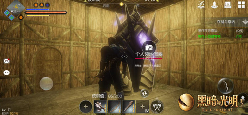 作为《方舟:生存进化》手游姊妹篇,《黑暗与光明手游》的生存玩法与前者一脉相承。尽管有着魔幻风格的世界观,但在生存难度上依然硬核,各类生存、建造资源必不可少。玩家在游戏中需要撸树、采集、狩猎,前期为了保证生存几乎要竭尽全力,而领地系统的概念更是让玩家竞争激烈。