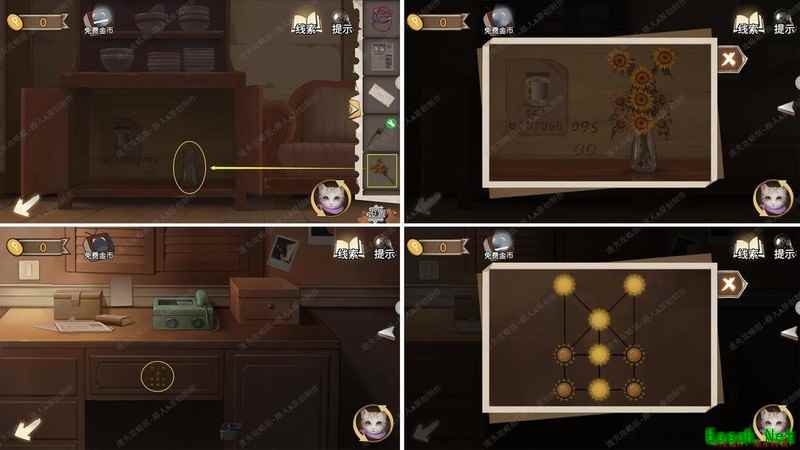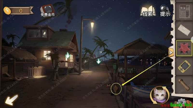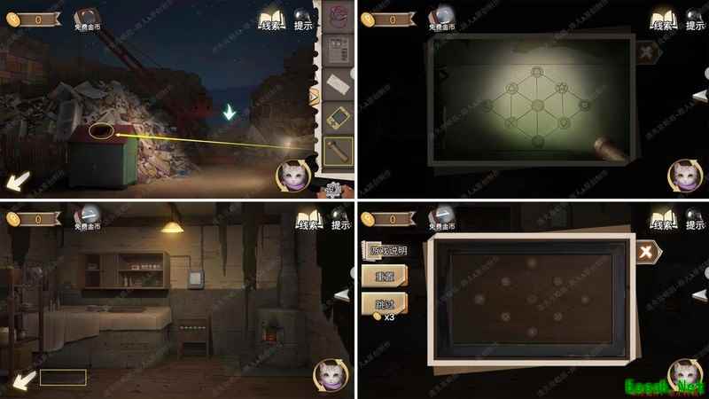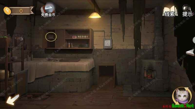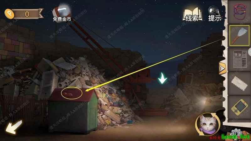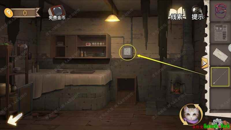 用手电筒照垃圾箱内部,依据线索开启厨房地板。
