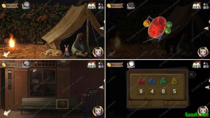 与狗交谈后,它会挪开爪子,发现珠宝并获取数字线索,随后打开长椅上的箱子,取得。