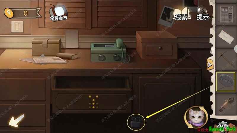 依据游戏机提示开启厨房柜子,获取螺丝刀。