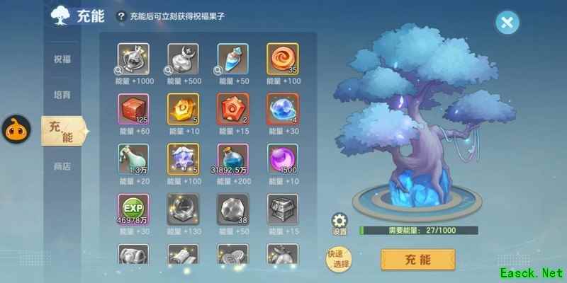 在祝福树充能时,溢出资源可以随意使用,但最实用的还是铃铛、强化石以及时装分解获得的材料。如果条件允许,可以在抽取时装的活动中多兑换一些价格较低的时装部件,比如头发、头饰等,分解后用来充能效果更划算。