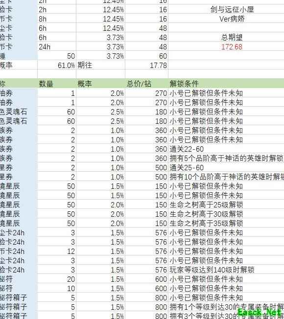 根据当前全解锁数据估算每次抽奖的价值,特殊奖励条件待定。