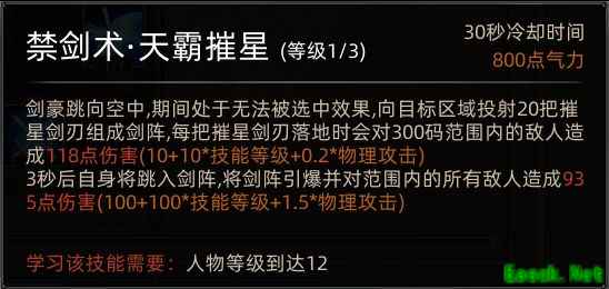 剑豪前期发育中规中矩,不算太难但也并不轻松。开局建议优先学习游民剑术与气刃剑,中期表现也较为普通,可能是因为寒牙技能的伤害被修复下调所致。12级学会天霸摧星后,可尝试配合秦王绕柱技巧单刷黑崖16级地牢,升级速度较快。至于后期表现尚不明确,笔者测试时还未体验到,但从剑豪众多被动技能来看,后期应该不会太弱。