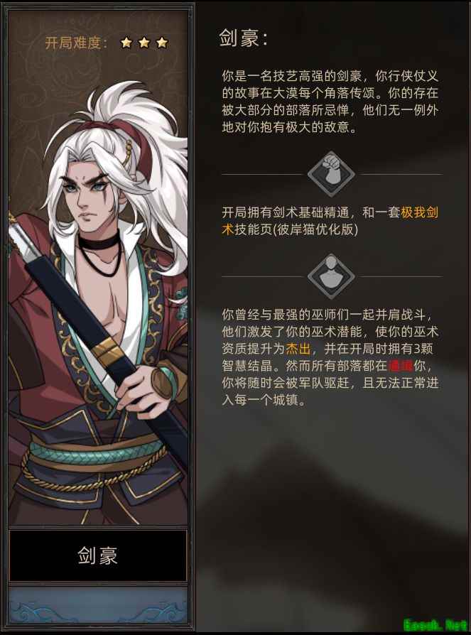 剑豪开局新增基础剑术,具体如下: