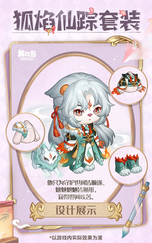奥比生活新系列「狐影夜游套装」「狐焰仙踪套装」、「灵狐发簪」「狐火发夹」「小狐狸灯笼」系列散件、「狐仙画境」「幽竹狐影」家具以及「狐仙绘卷背景」背景卡,将在8月29日上线。本期还有奥比生活塔罗系列第五期装扮返场,本期生活达到一定等级即可获得「倒吊之心套装」「开朗愚者套装」的购买资格,喜欢的奥比们不要错过了!