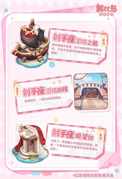 奥比生活新系列「射手座光辉套装、射手座航海套装」时装、「射手座冒险之船、射手座瞭望台」家具以及「射手座冒险旅程背景」即将在12月7日版本开启后上线,小奥比们敬请期待!