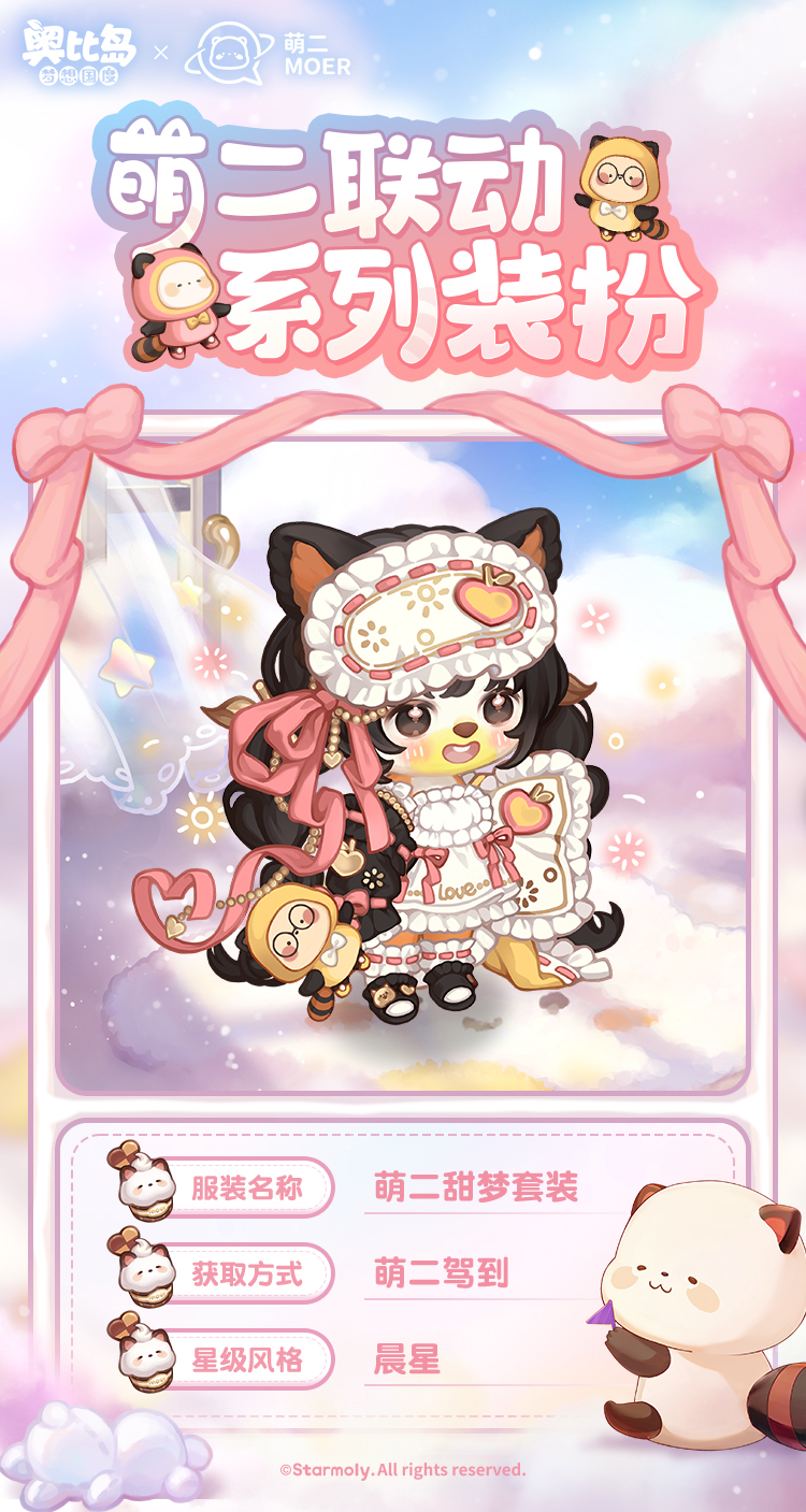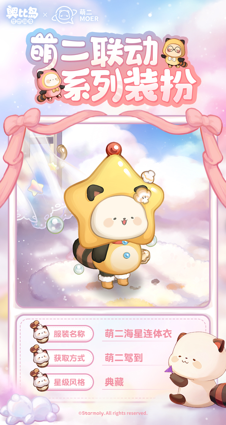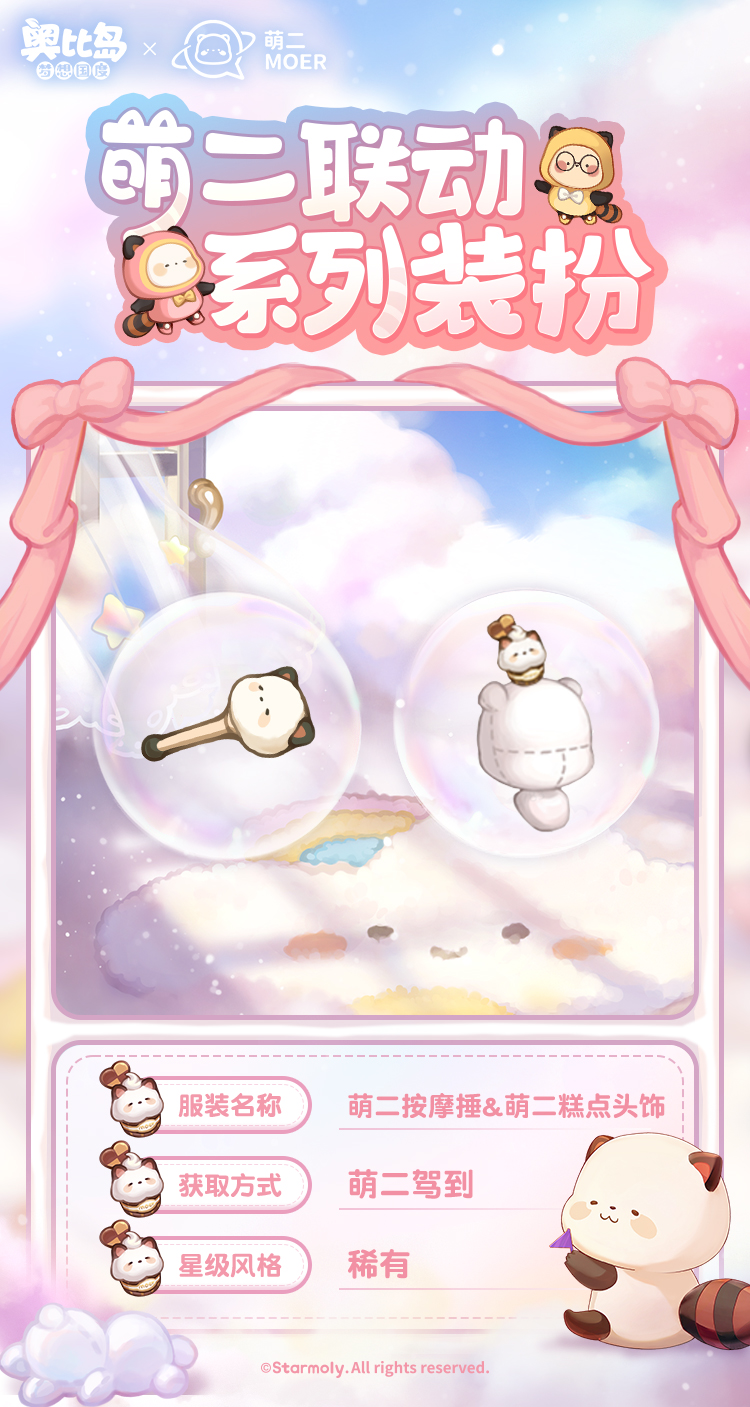 熊熊联萌,萌力全开!超人气表情包小巨星——萌二,要来奥比岛开启巡游签名会啦!为了回馈小奥比们的热情,萌二精心挑选了一系列超Q的精致写真,就等你来珍藏这份萌动! 收集「萌二」写真,领取限定装扮「萌二甜梦套装」「萌六睡意套装」、背景卡「萌二云端卧室」等萌趣装扮和家具!