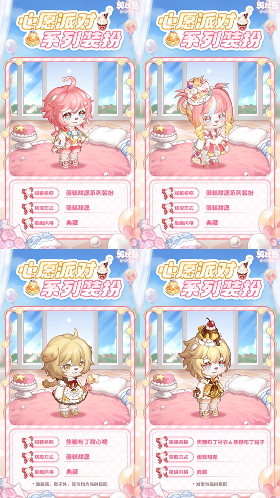 星愿蛋糕派对开启,小奥比们快来许下心中最想实现的愿望!7月18日,「心愿派」限时活动正式开启,参与「蛋糕甜愿」限时活动可获得活动限定礼物,奖励包括「脆脆甜筒服」「焦糖布丁甜心裙」「焦糖布丁衬衣」「甜莓蛋糕发箍」「甜莓蛋糕奶油裙」「甜莓蛋糕皮鞋」「甜莓蛋糕手提包」「甜莓蛋糕可爱眼」「奶油草莓短裤」等限定装扮,以及「蛋糕小屋小桌」「蛋糕小屋庆祝板」「蛋糕小屋烛灯」「蛋糕小屋地毯」「蛋糕小屋壁炉」等限定家具散件。此外,在本次活动中完成全部物品收集的小奥比,还可获得限定装扮「空间开场(爱意)」!