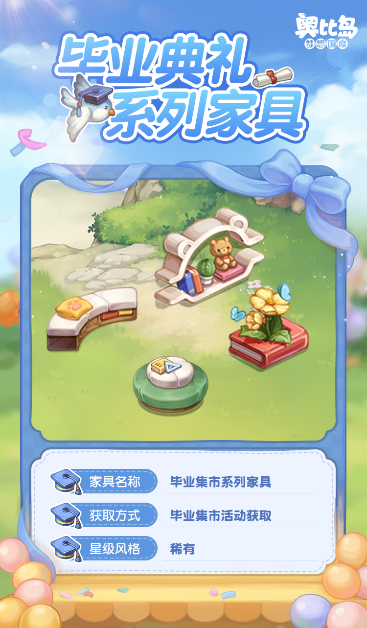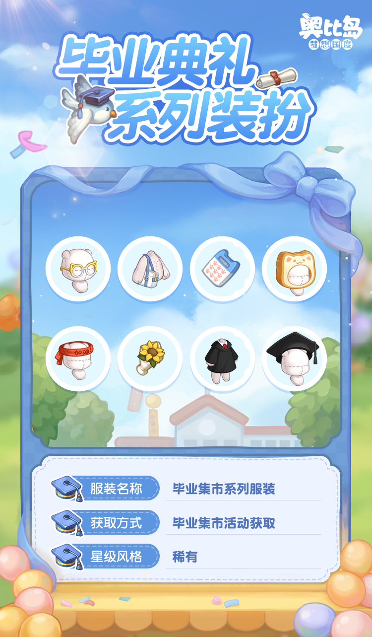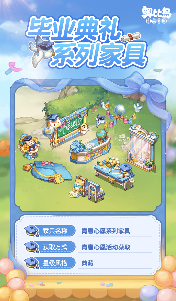 奥比岛手游「毕业典礼」活动已开启,现在下载奥比岛手游,许下「青春心愿」,获取充满青春活力的限定装扮吧!还有各种满载着快乐和回忆的校园纪念品主题时装、家具等你解锁,还有丰厚奖励等你领取!