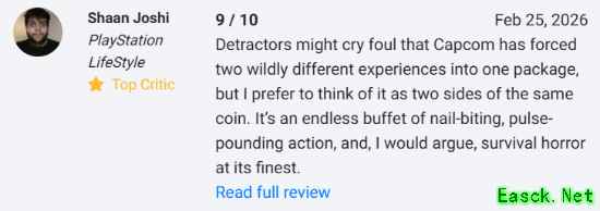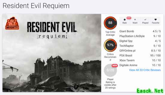 此外《生化危机9:安魂曲》在IGN获得9分的评价,M站均分89分。