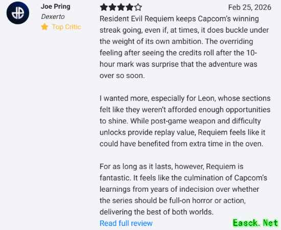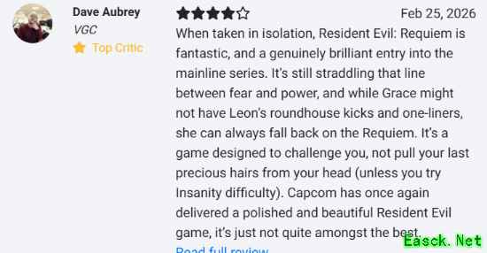 我还想要更多,尤其是里昂的部分,感觉他的戏份没有得到足够的机会发光发热。虽然通关后解锁的武器和难度增加了重复游玩价值,但《安魂曲》给人的感觉是,如果再打磨一下会更好。
