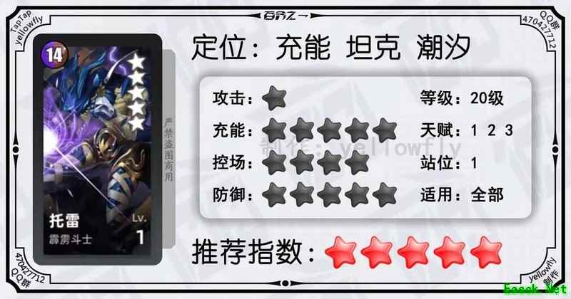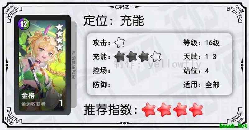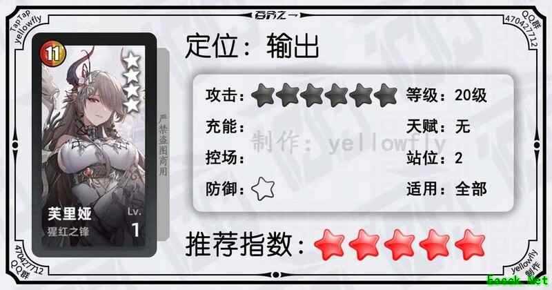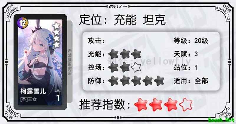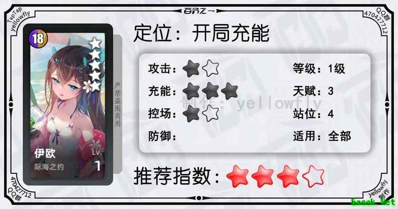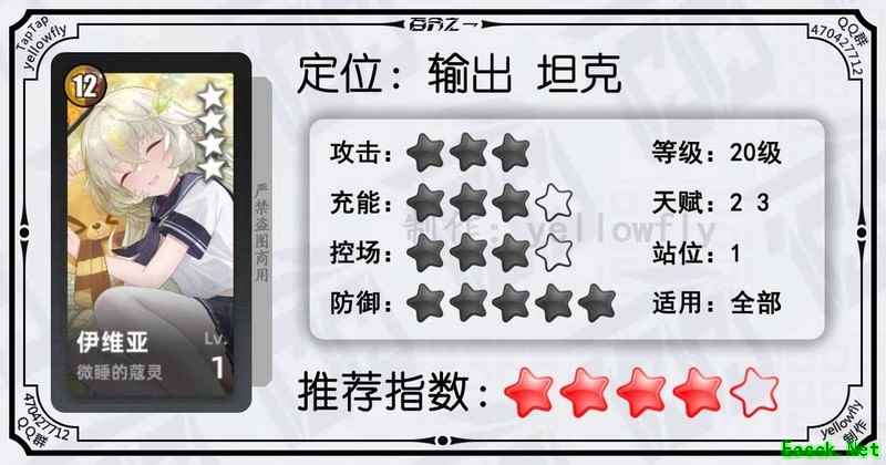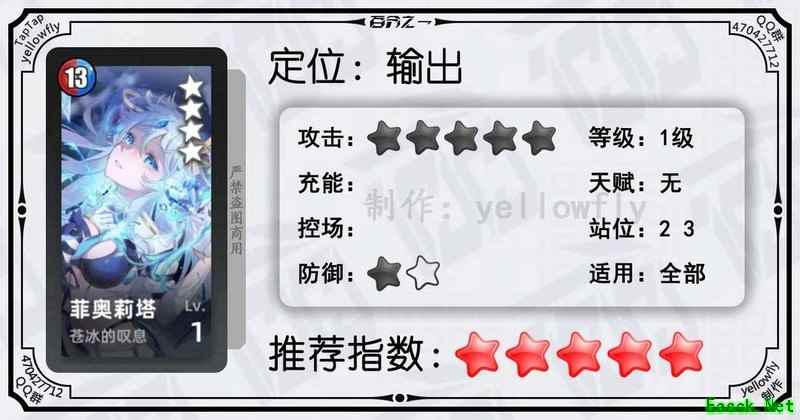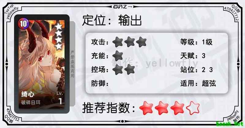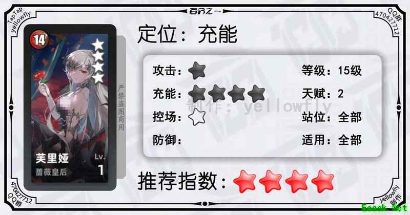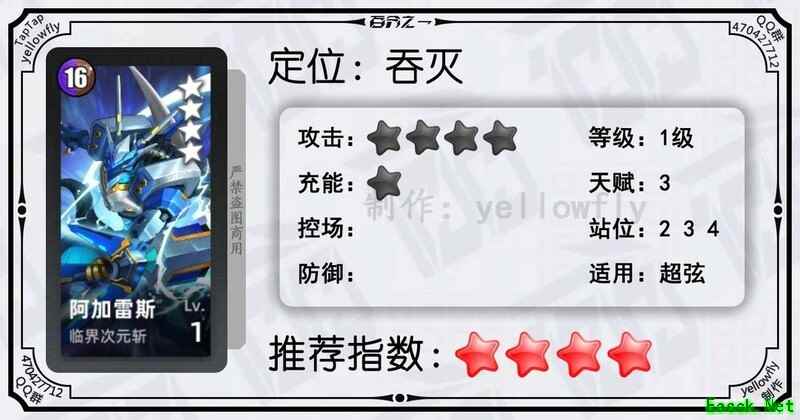 开局为全体龙属性队友充能,加快全队启动速度,是芙神队的重要成员。虽然技能能量需求较高,实战中可能难以释放,但1级即可使用,推荐优先开启3星天赋。