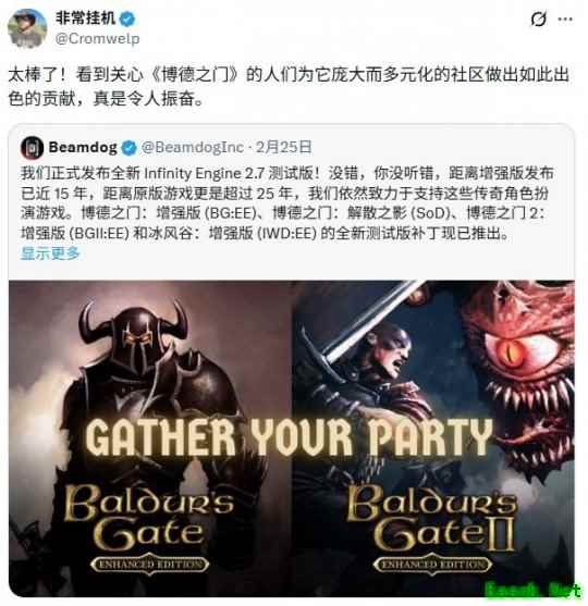 Beamdog工作室宣布将为经典RPG《博德之门1》和《博德之门2》推出全新补丁,以此提醒粉丝们,即使时隔数十年,他们仍在持续支持这些传奇项目。此次更新距离增强版的发布已过去近15年,距离原版游戏的问世更是超过了25年。