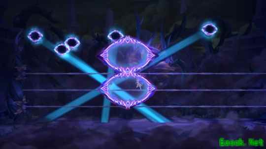 副本过程中界面上方会有两种标记,代表着知识和真理两个方面,对付BOSS的个别攻击时需要使用快捷键对两种标识进行切换,来破解他的攻击机制。除此之外,BOSS在行走时地面会产生震动波,玩家可跳跃躲避;还会生成注视空间,在其轨道内进行俯冲,对玩家造成巨大伤害。