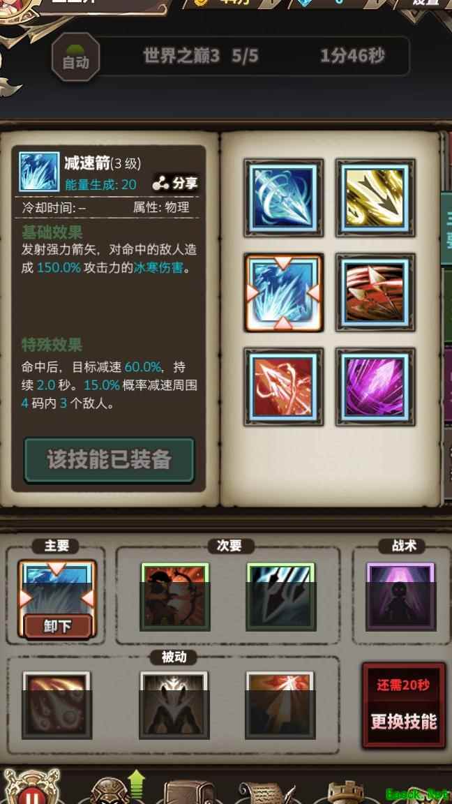 减速箭是核心技能,60%的减速效果可轻松拉开与怪物的距离,实现风筝战术,让敌人追不上。配合被动穷追猛打,在持续追击中大幅提升输出伤害,掌控战斗节奏。