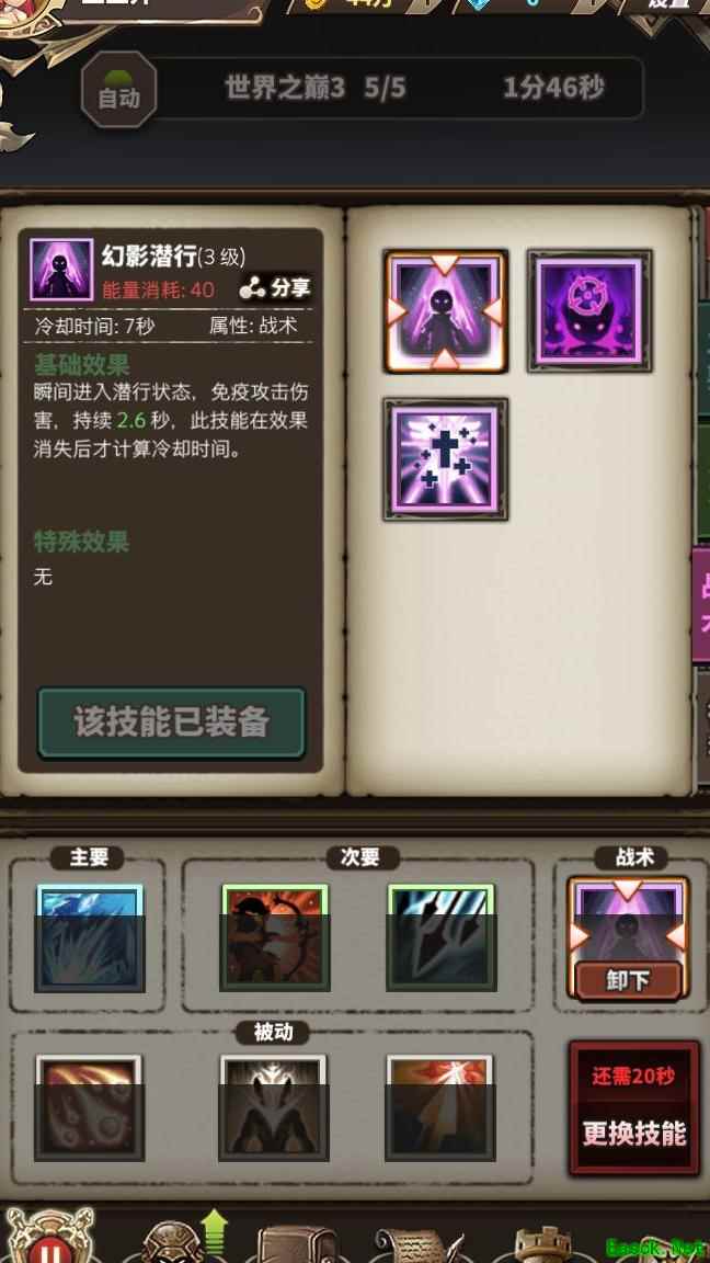 我偏好潜行战术,对付小怪十分高效,挑战boss时则切换至第二种技能应对。